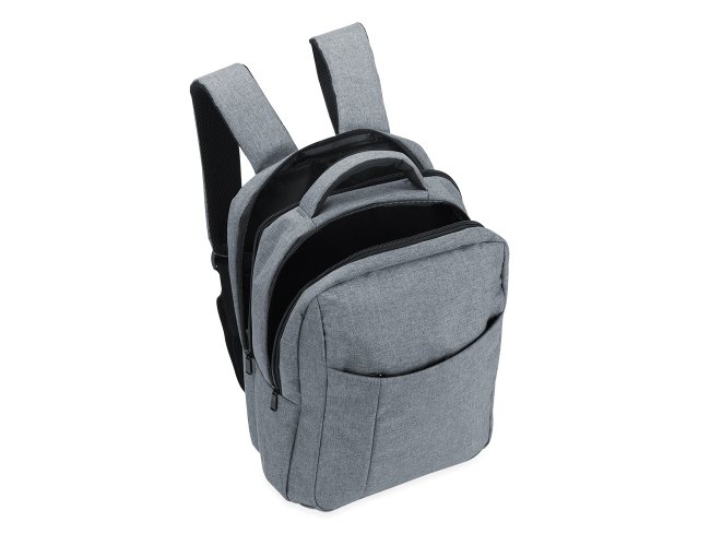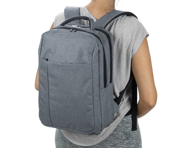 Mochila de nylon com compartimento para notebook. Dois compartimentos grandes, sendo o primeiro com bolso interno para notebook e compartimento frontal com zíper escondido. Zíperes preto com pegadores plásticos, alça superior, alças para costa ajustáveis revestidas com espuma para maior conforto.