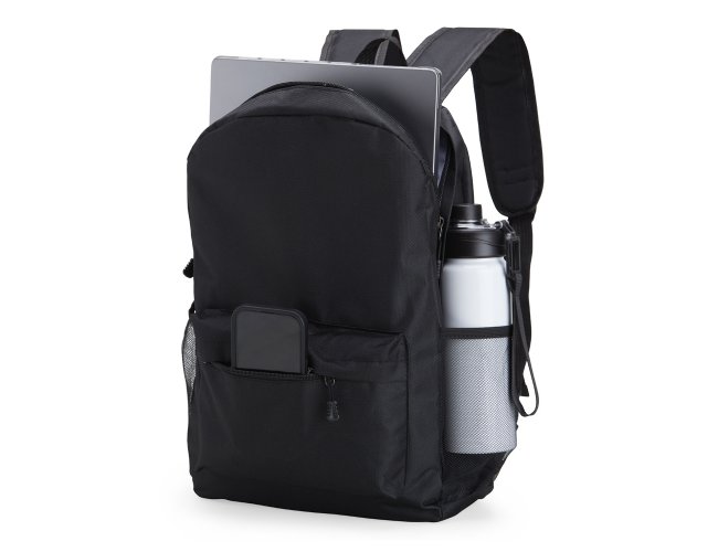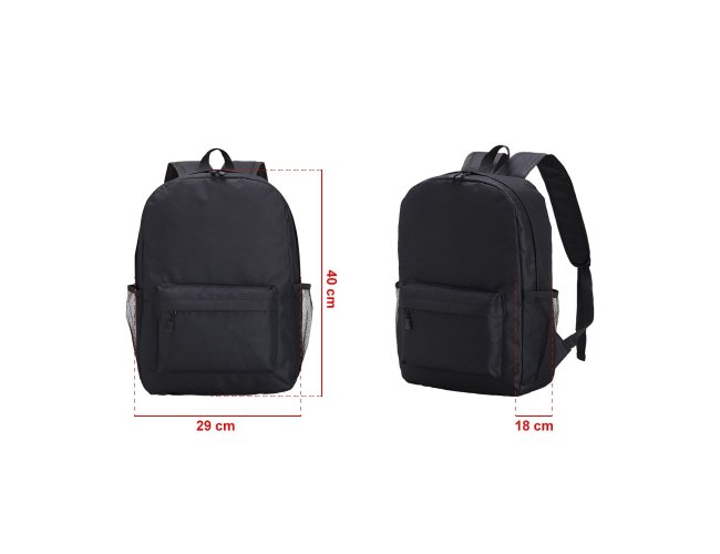 Mochila de Nylon 22 litros com dois compartimentos, sendo principal com bolso raso para notebook 15.6. Contém bolsos laterais telados.