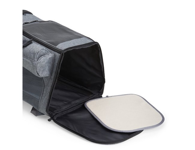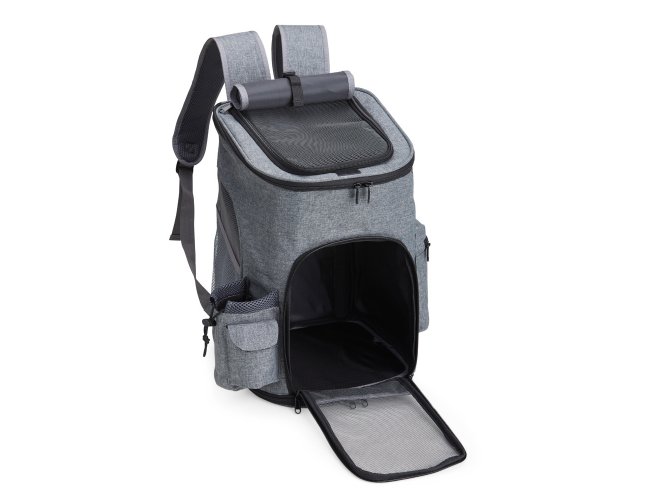 Mochila para transporte de pets, confeccionada em tecido Oxford, apresenta um compartimento lateral e bolsos adicionais. Seu tapete dupla face, com uma camada aveludada, foi projetada para garantir o máximo conforto ao pet. Equipada com telas respiráveis em nylon, esta mochila possui duas aberturas superiores: uma completa e outra parcial, com cobertura ajustável. Além disso, conta com uma abertura frontal parcial e um fundo com abertura completa, proporcionando uma experiência de transporte arejada e prática para entrada e saída do pet. A mochila dispõe de alça de mão e alças para as costas revestidas com material respirável.