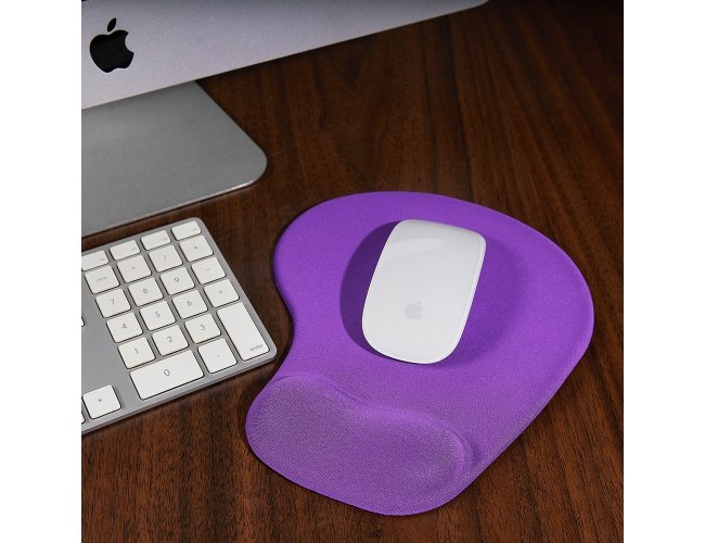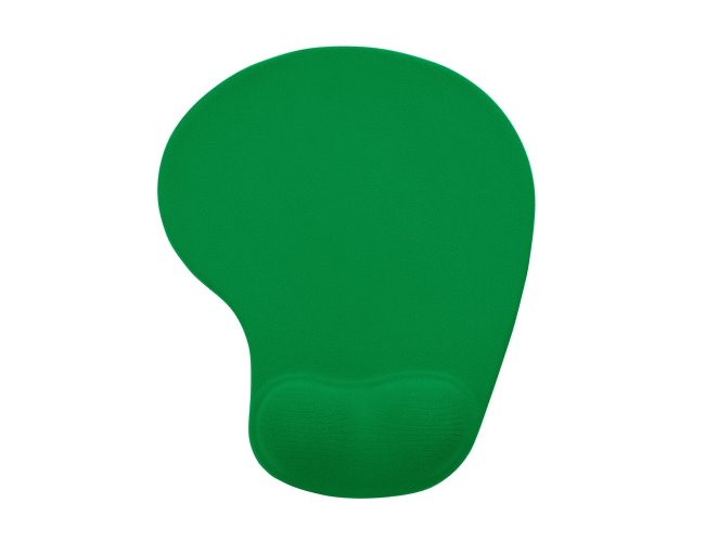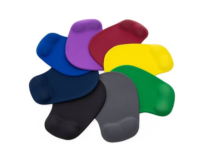 Mouse Pad ergonômico de neoprene com apoio de silicone para o punho. Parte inferior revestida com silicone antiderrapante.