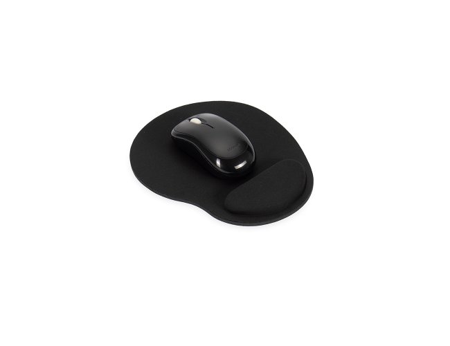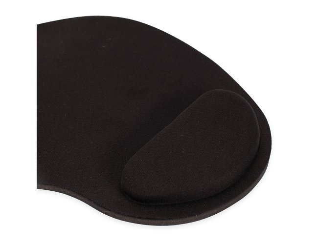 Mouse pad feito em poliéster e base em EVA. Possui design ergonômico que oferece maior conforto durante o uso graças ao seu apoio de punho com enchimento de espuma macia.