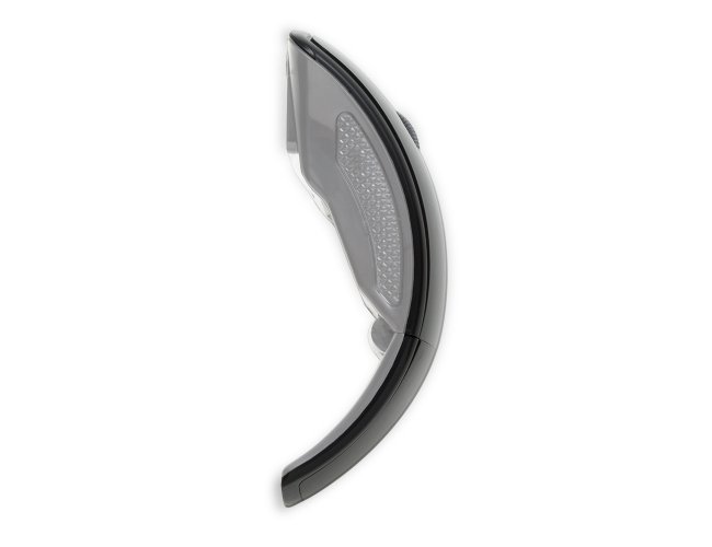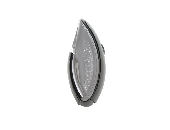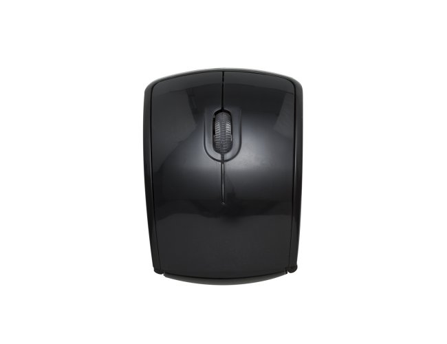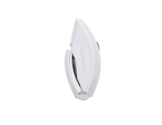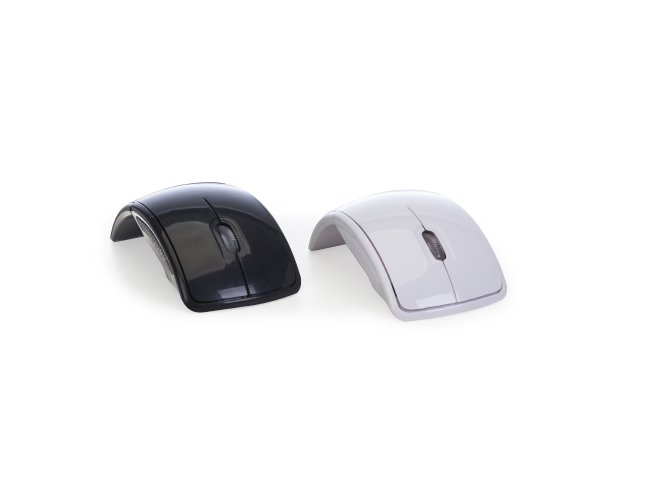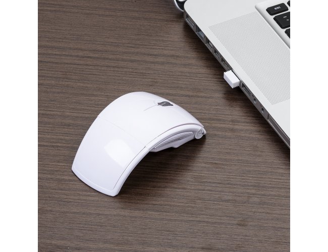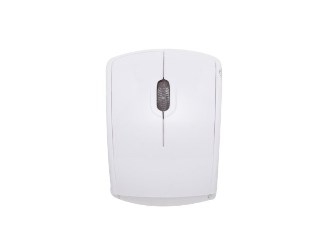 Mouse óptico de tecnologia wireless e retrátil. Mouse anatômico de material plástico resistente, possui rolamento plástico translúcido, laterais texturizadas, parte traseira dobrável, luz inferior óptica vermelha, receptor Nano USB 2.4 GHZ. Funcionamento através de 2 pilhas AAA(não acompanha).