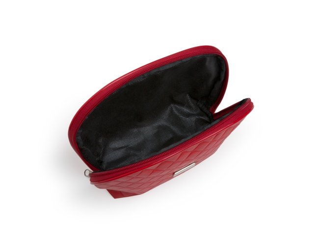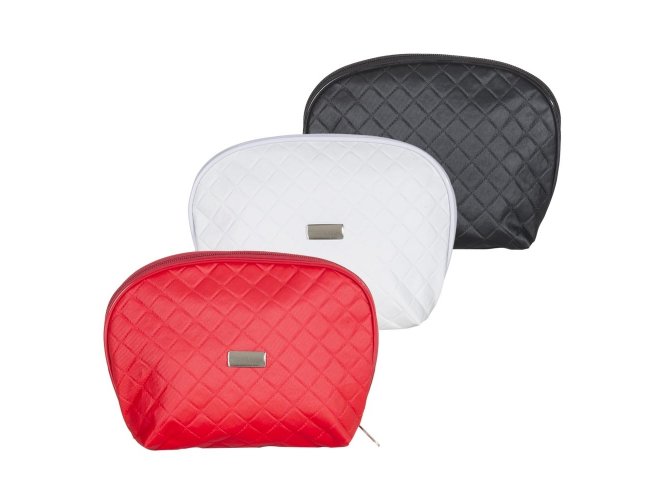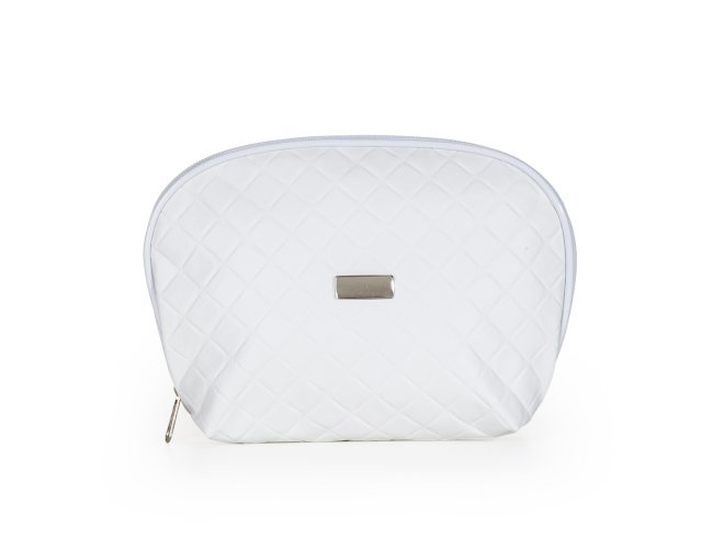 Nécessaire puff matelassê, material em couro sintético. Possui uma plaqueta prata no centro para gravação.