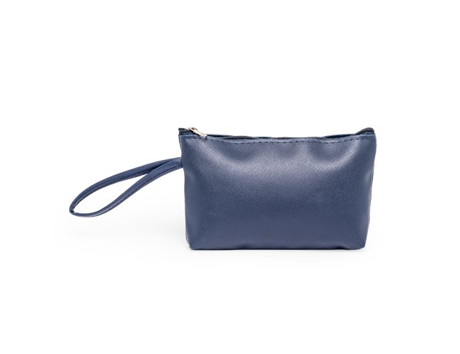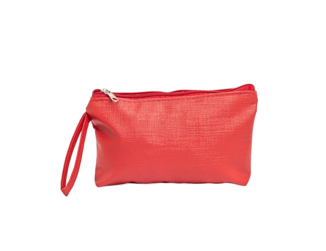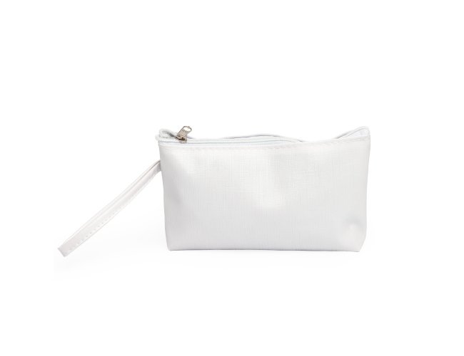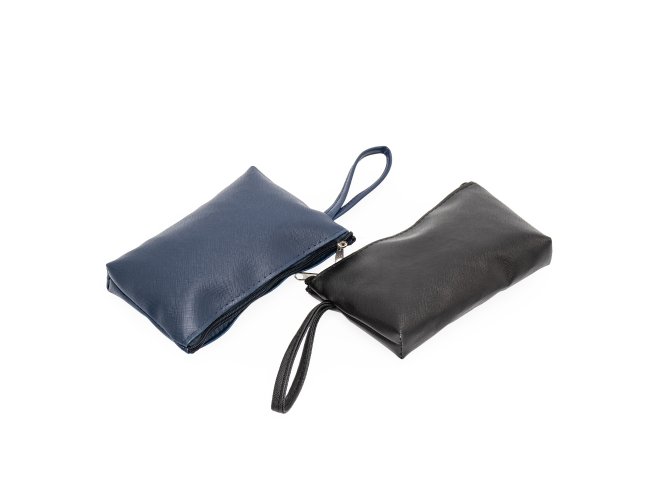 Nécessaire em couro sintético resistente à água com alça para transporte.