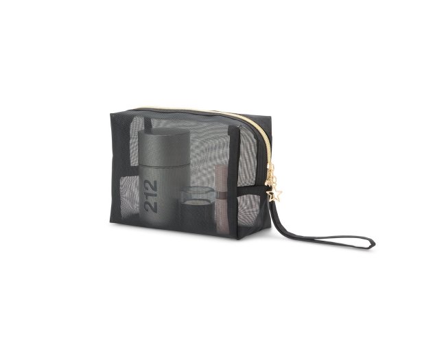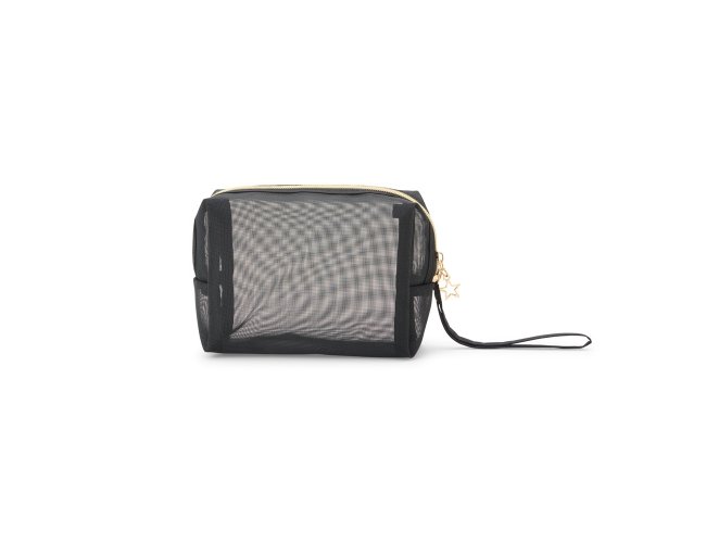 Nécessaire confeccionada em malha de nylon. Seu visual em malha, permite uma fácil visualização dos itens em seu interior. Os detalhes em dourado no zíper, adicionam um toque de elegância e sofisticação.