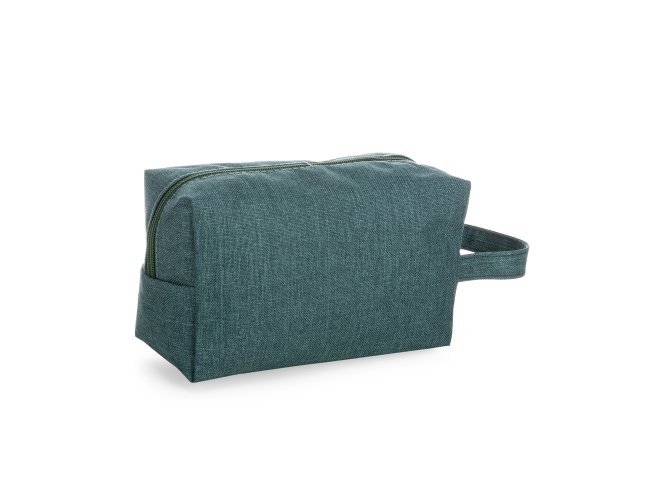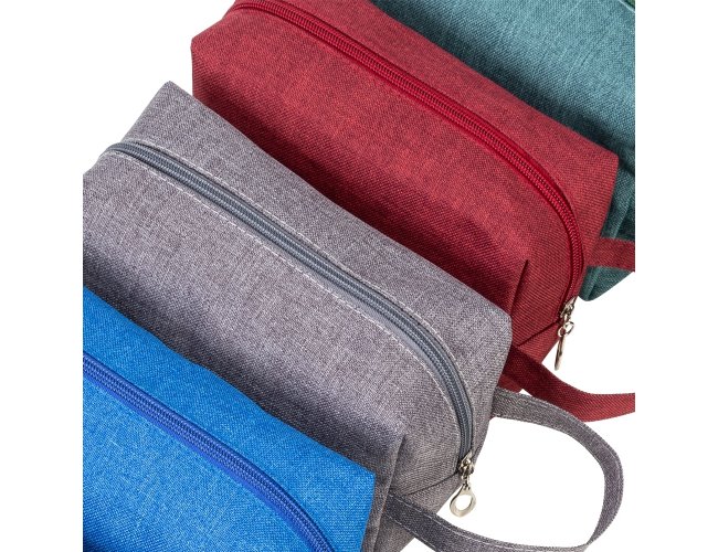 Nécessaire multiuso em nylon resistente à água, fechamento em zíper e alça lateral de mão.