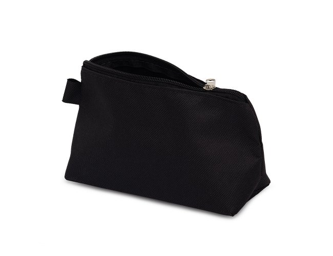 Nécessaire de nylon com alça pequena para acesso de chaveiro ou gancho.