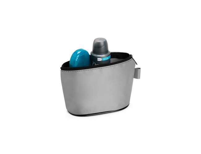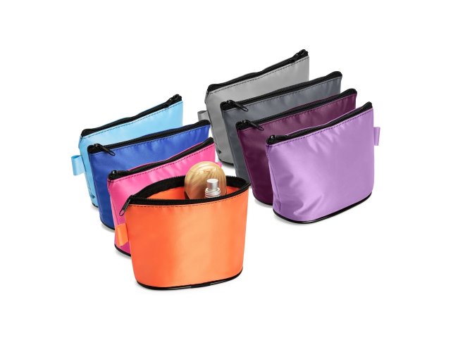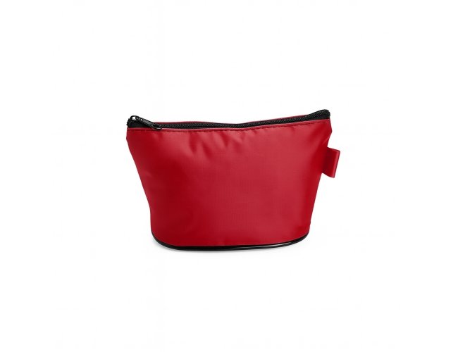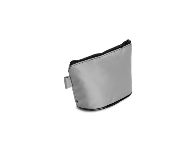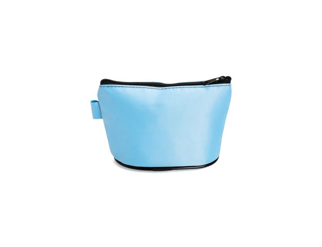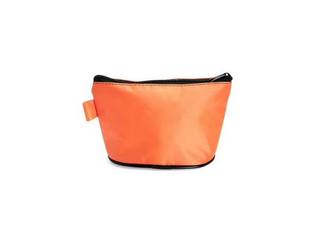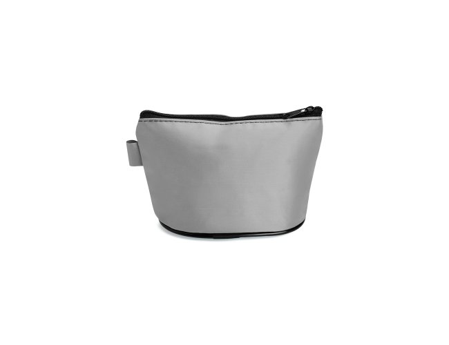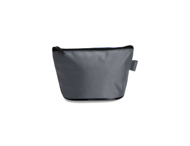 Nécessaire confeccionado em nylon impermeável, fechamento em zíper e alça pequena para acesso de chaveiro ou gancho.