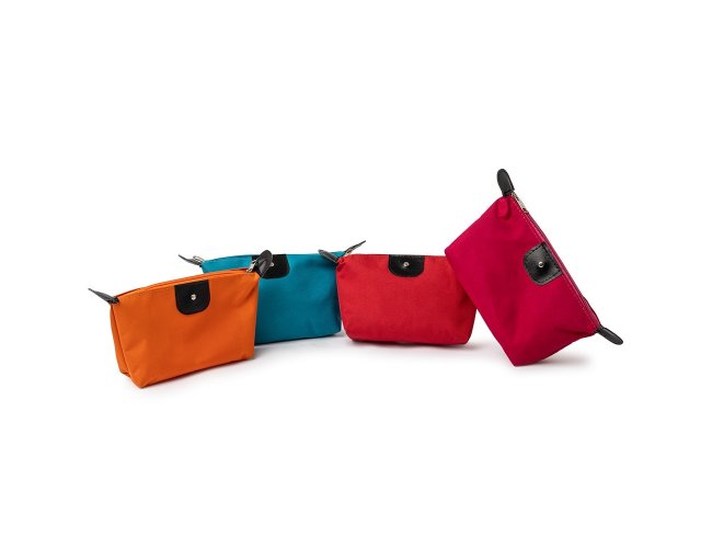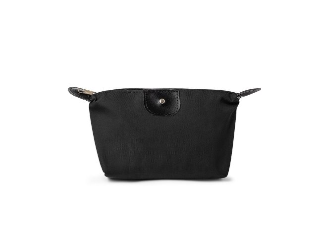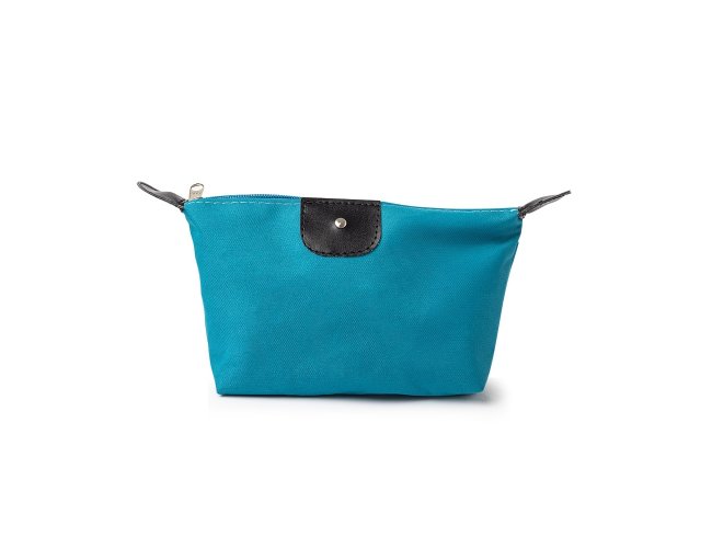Nécessaire em tecido nylon oxford, resistente a água com detalhes em couro sintético e parte interna com revestimento emborrachado, elegância e simplicidade no mesmo item. Possui um detalhe circular brilhante no couro frontal.