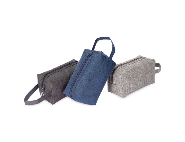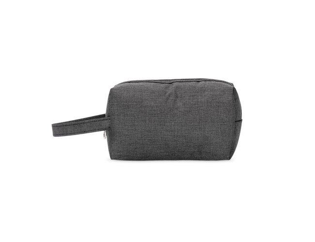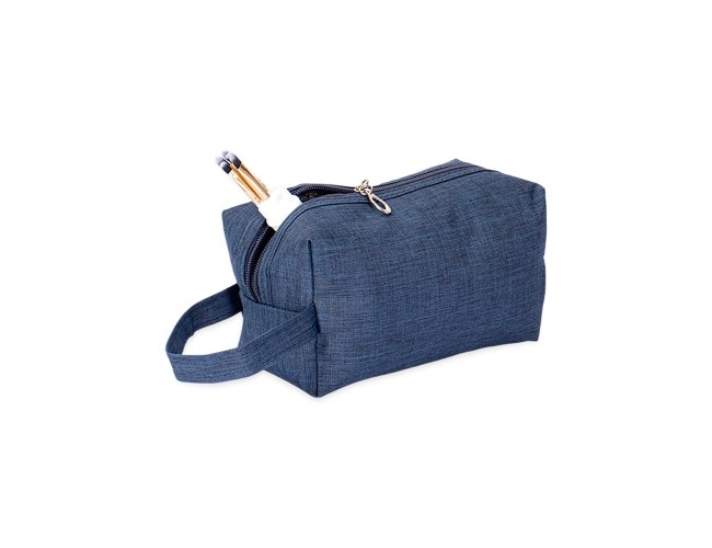 Nécessaire em nylon resistente à água com fechamento em zíper. Conta com alça lateral para facilitar o transporte.
