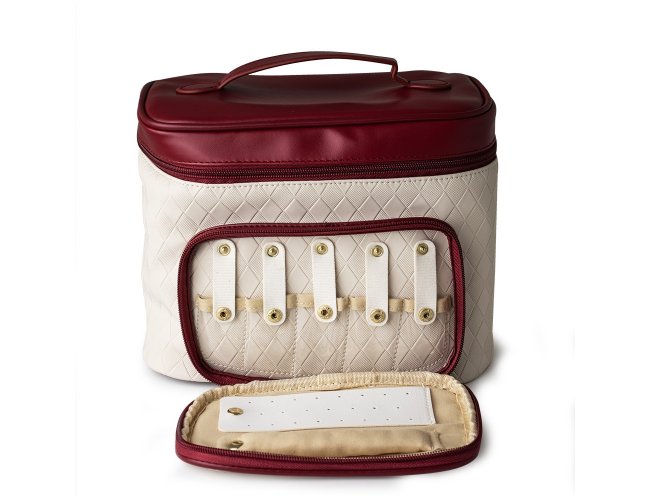 A combinação perfeita entre delicadeza e qualidade, esta nécessaire agradará até mesmo as pessoas mais exigentes. Feita de PU resistente à água, cada detalhe foi meticulosamente pensado para torná-la prática: um compartimento principal com 5 divisórias para pincéis e amplo espaço para diversos cosméticos, além de um compartimento frontal com vários organizadores para joias como anéis, brincos e colares. Com zíperes de puxadores dourados, cada detalhe torna esta nécessaire uma peça sofisticada e funcional.