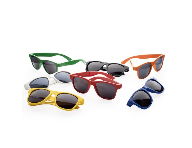 Óculos de sol produzido em material plástico.