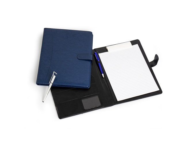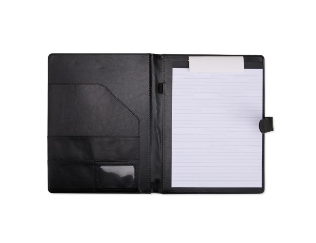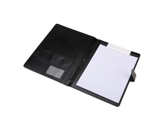 Organização impecável com estilo profissional. Nossa pasta executiva, feita em couro sintético de alta qualidade, acompanha um bloco de aproximadamente 20 folhas pautadas removíveis para anotações, suporte para caneta, bolsos para organizar folhas ou documentos, suporte para cartões, incluindo um com visor de identificação. Além disso, possui fechamento magnético, unindo praticidade e elegância em um único produto.