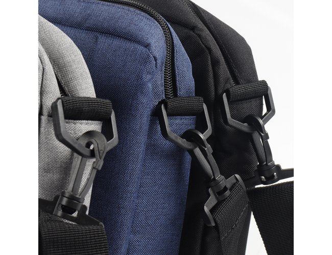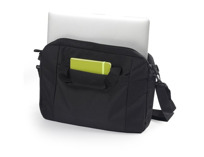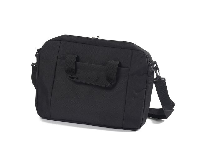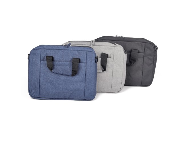 Pasta para notebook 14 polegadas em poliéster, possui dois bolsos com zíper, três compartimentos internos sendo um deles com alça protetora para o notebook.