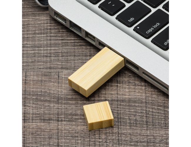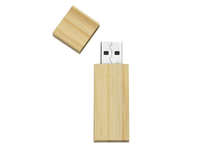 Pen drive 4GB/8GB/16GB de bambu com tampa de imã, frente e verso lisos.