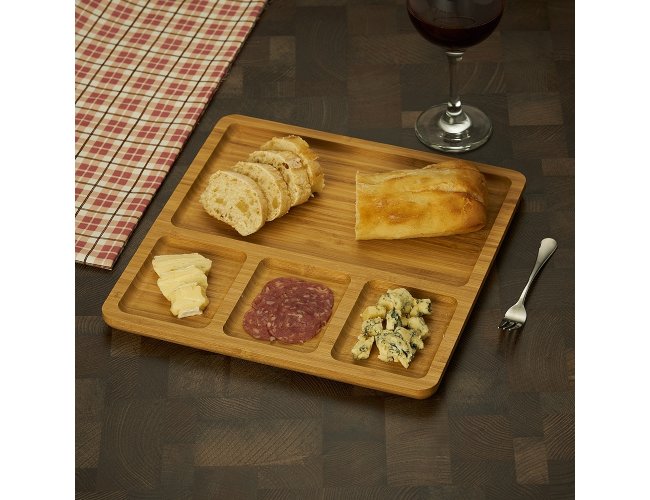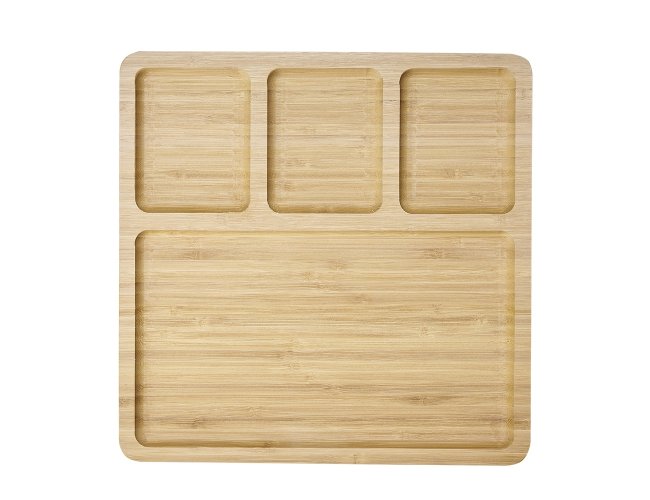 Petisqueira de bambu quadrada com 4 divisórias.