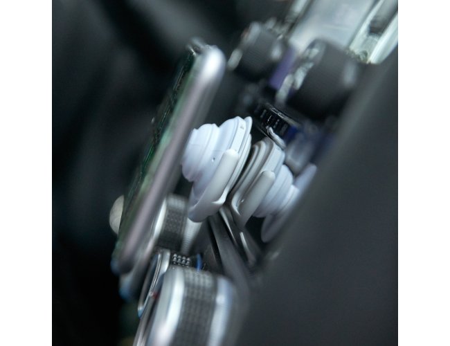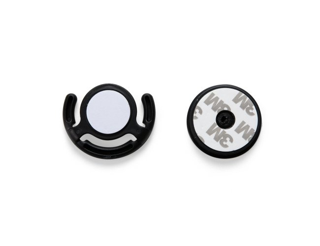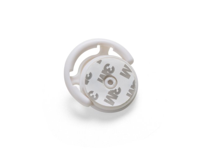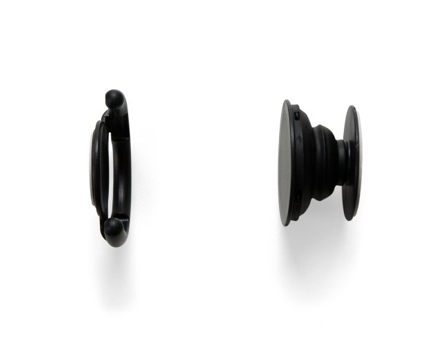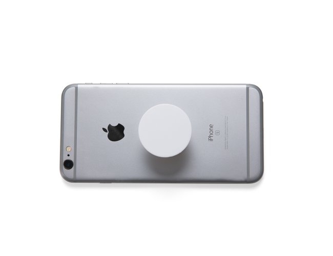 Suporte plástico para celular. Material plástico colorido, possui ?disco? anelar retrátil que ao puxá-lo abrirá o encaixe para os dedos e possibilitará a rotação da peça. Base plástica para encaixe, pode ser colada no celular, paredes, vidros, ou onde desejar afim de que possa encaixar o suporte anelar. Suporte e base com adesivos, basta remover a proteção e colar no local desejado.