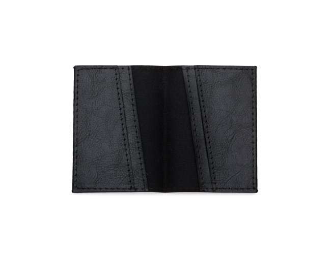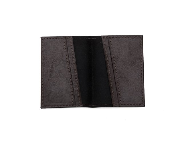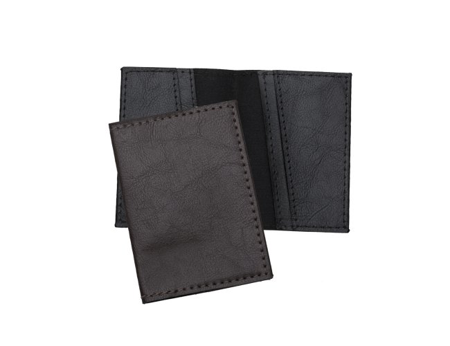 Porta cartão em couro sintético com quatro divisórias em diagonal.
