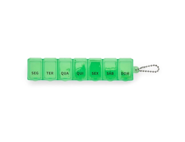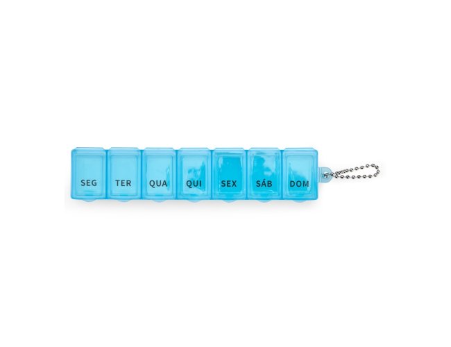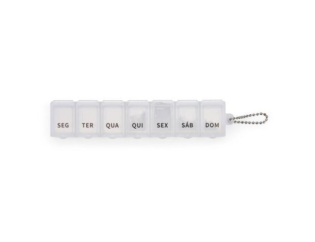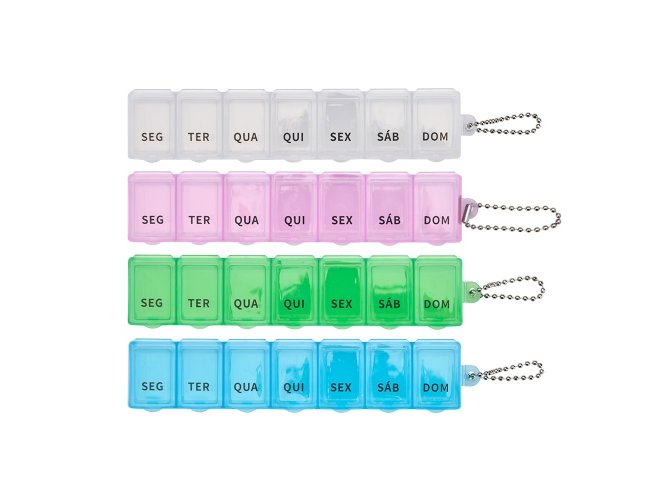Este porta comprimidos ideal para ajudar a organizar uma rotina de cuidados com a saúde. Feito em plástico, o porta comprimidos contém sete divisórias com capacidade de até 10 ml. cada compartimento é marcada com o nome de um dia da semana abreviado, tudo para facilitar a separação precisa de medicamentos para uso de forma contínua. Além disso, acompanha uma corrente de bolinhas para encaixar no porta comprimidos e pendurá-lo em um chaveiro ou alça.
