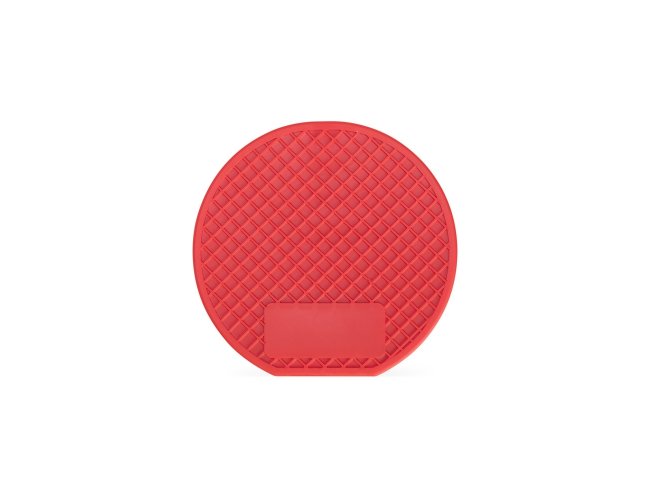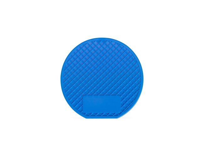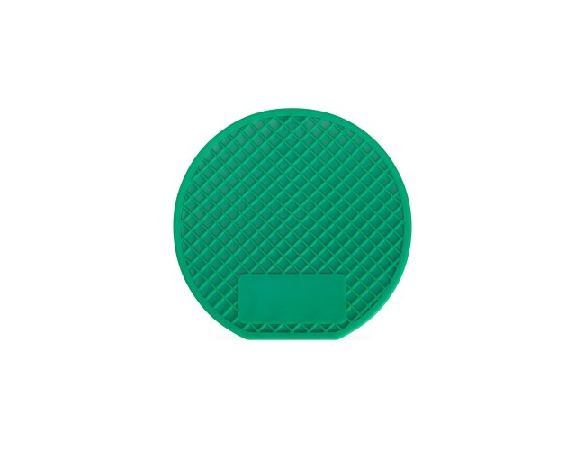 Um porta-copos feito em PVC com ranhuras antiderrapantes, tornando-o uma opção versátil para proteger superfícies planas contra manchas ou derramamento de líquidos.