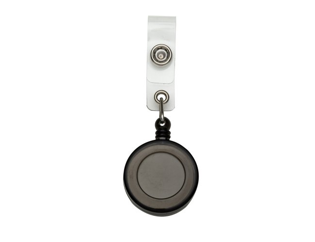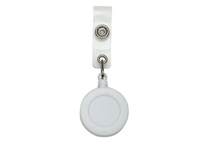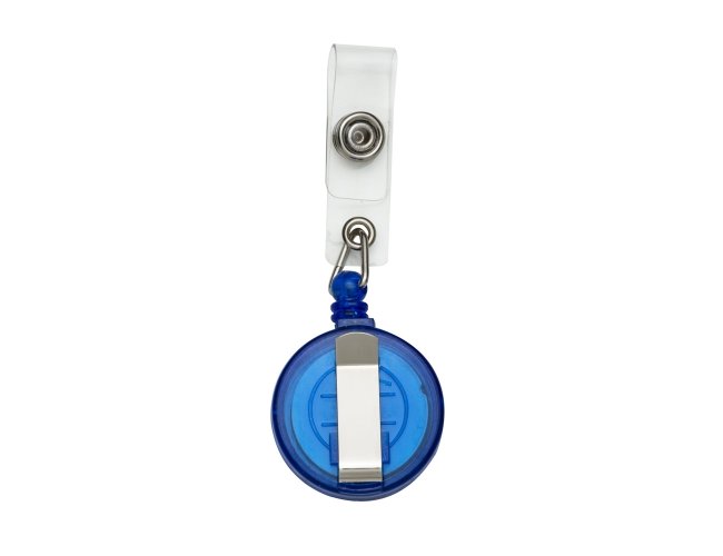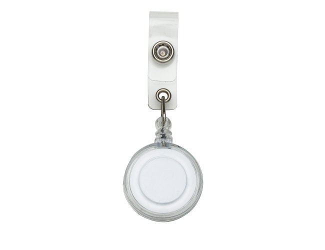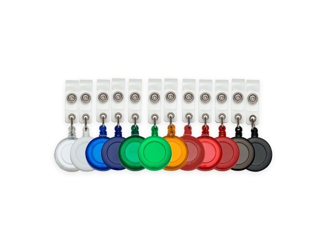 Porta crachá retrátil plástico, cores leitosas e translúcidas. Roller clip possui sistema extensor em nylon que após puxar é recolhido automaticamente. Possui presilha metálica na parte traseira e alça plástica com botão.