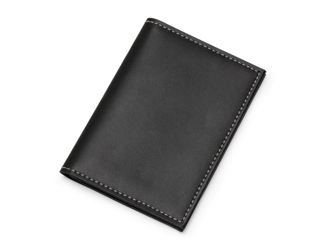 Porta-documento em couro sintético, frente e verso liso. Parte interna com dois bolsos de visor plástico.