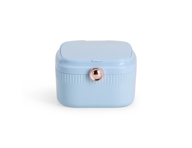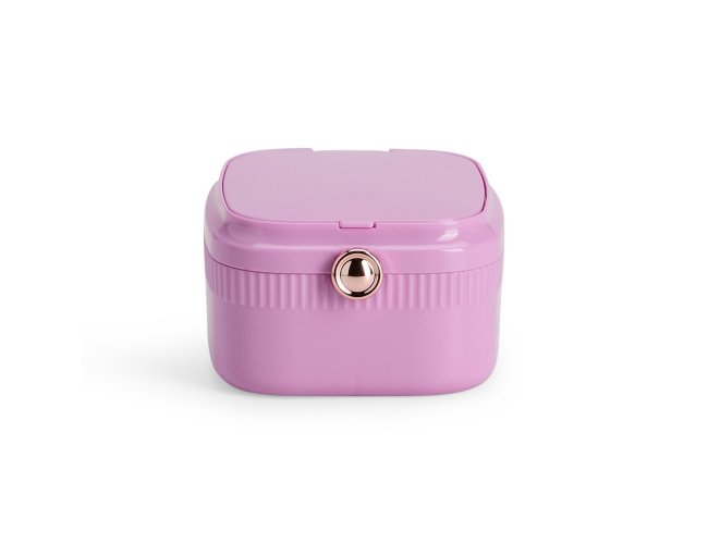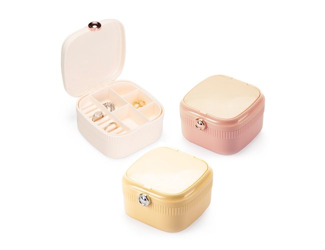 Suas joias merecem um lugar especial, e com este porta-joias, manter os acessórios organizados e protegidos nunca foi tão fácil e elegante. Produzido em plástico e de design compacto, sua abertura principal é cheia de glamour, destacada por um lindo botão na cor rose gold. Sua parte interna conta com três compartimentos: um removível e emborrachado, ideal para anéis, brincos e colares, e outro com divisória, perfeito para itens maiores como batons, pulseiras ou o que mais desejar. Além disso, possui um compartimento com espelho embutido, tornando o momento de se arrumar ainda mais especial na hora de escolher os acessórios.