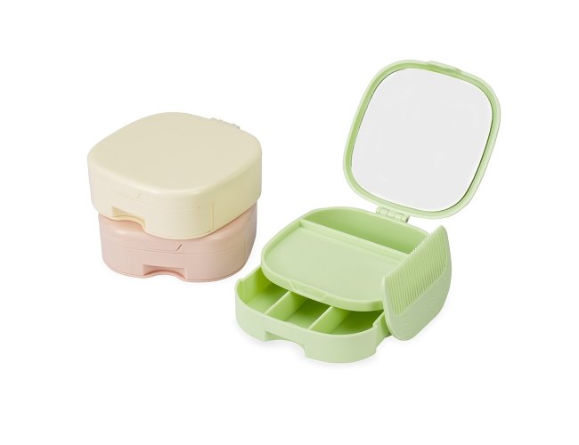 Este porta-joias feito em plástico é uma ótima opção para guardar objetos delicados com segurança. O organizador conta com espaço interno com dois compartimentos de tamanhos distintos e uma gaveta com três divisórias. Além disso, possui um espelho na parte interna da tampa, o que destaca sua versatilidade. Acompanha um pente compacto.