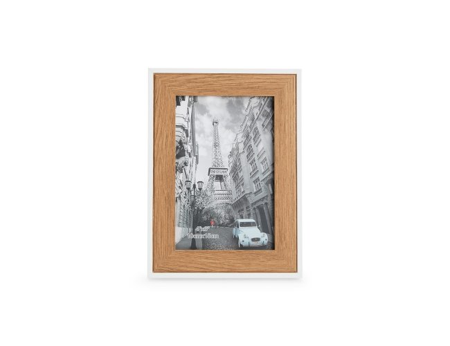 Porta-retratos para fotos 10 x 15, ideal para uso na vertical ou na horizontal. Possui moldura e fundo em MDF, visor em folha de acetato e travas metálicas.