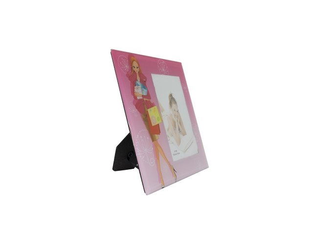 Porta retrato com frente de vidro e parte traseira (apoio) revestida de veludo.