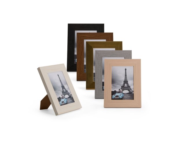 Porta-retrato para fotos 10 x 15, ideal para mesas e superfícies planas. Possui moldura em PVC, visor em acetato, fundo em MDF e travas metálicas.