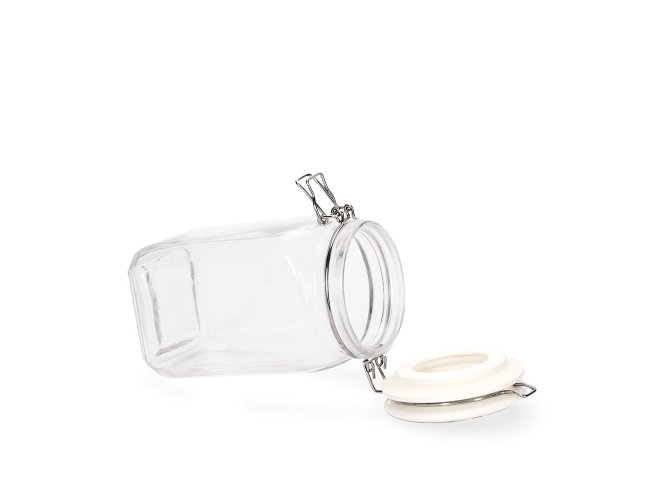 Pote de vidro multifuncional com capacidade máxima de 1.25 litro. Ele mantém o conteúdo em seu interior conservado por mais tempo graças à sua tampa com fechamento hermético, anel de vedação e trava de segurança.