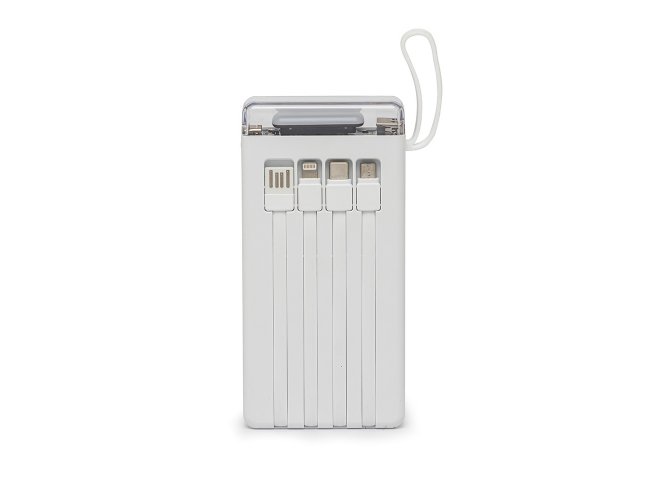 Carregador power bank de 10.000mAh com lanterna e múltiplas saídas. Produzido em plástico, este power bank possui indicadores de bateria e vem equipado com quatro cabos de carregamento, eliminando a necessidade de transportar cabos extras. Compatível com entradas V8, Tipo-C, Lightning e USB, praticidade é o sinônimo deste carregador. Com alça de borracha e um tamanho compacto para um transporte discreto, ele possui uma capacidade real de 6.000mAh para manter os dispositivos sempre carregados. Acompanha cabo USB-V8.