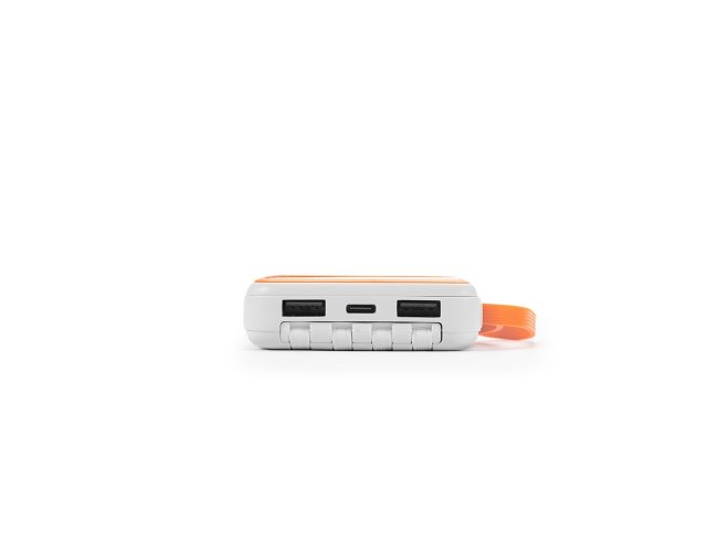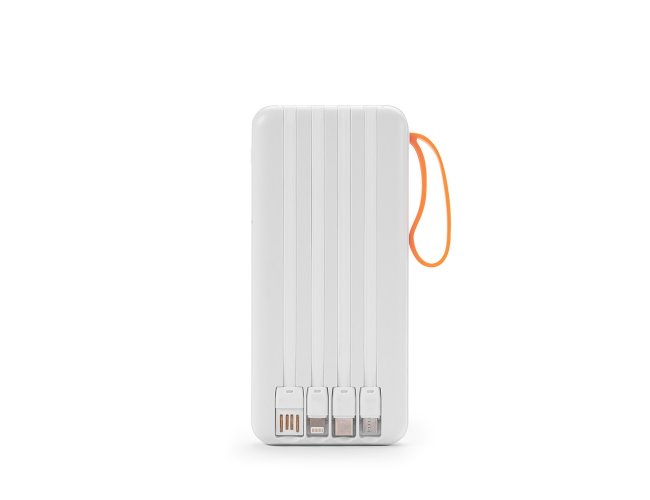 Aparelhos recarregados com um power bank que combina agilidade e eficiência em um único carregador. Feito em plástico com capacidade de 10.000mAh, fornece a bateria necessária para celulares, tablets e outros aparelhos compatíveis nos momentos mais necessários. Apresenta painel com números fixos em LED para indicar o percentual de carga restante no power bank, tornando mais simples identificar o reabastecimento de carga do próprio aparelho de recarga portátil. Versátil, ele é compatível com diversos dispositivos, pois conta com quatro cabos acoplados: USB-C, Micro USB, Lightning e Cabo USB. Também possui duas saídas USB e uma USB-C para a sua própria recarga. Além disso, vem com uma alça fixa de borracha para facilitar o transporte. Acompanha cabo USB-C.