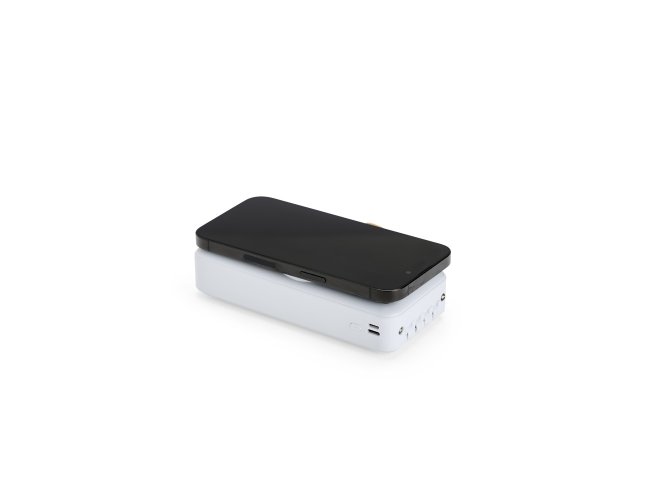 Medidas aproximadas para gravação: (CxL): 10 cm x 7,5 cm (caixa) - 3 cm x 5 cm (power bank)