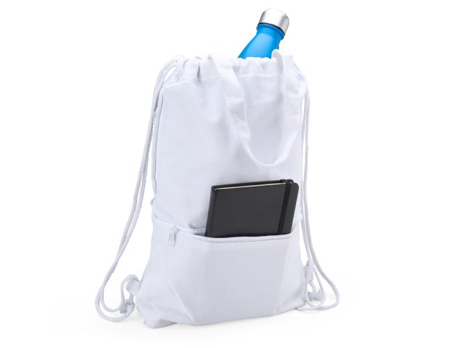 Liberdade para usar como quiser. Nossa sacochila versátil, feita em lona resistente, é perfeita para as necessidades do dia a dia, podendo ser usada tanto nas costas ou através de suas alças, transformando-a em uma sacola estilosa. Além disso, possui um amplo espaço no compartimento principal, fechado pelas alças de cordão, e conta com um bolso frontal com zíper, garantindo a segurança dos pertences.