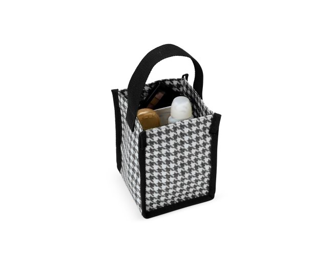 A nossa sacola compacta estampada é a combinação perfeita de elegância e praticidade. Feita em poliéster, com um charmoso padrão pied-de-poule, ela traz um toque clássico e sofisticado. Funcional, é ideal para levar aqueles itens que podem facilmente se perder em bolsas maiores no dia a dia. Sua alça permite transportá-la para qualquer lugar com conforto. Um acessório pequeno no tamanho, mas grande na versatilidade de transformar qualquer visual.