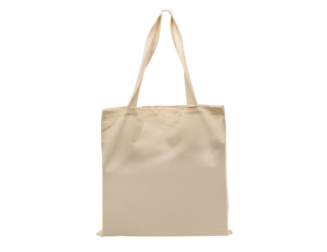 Sacola de algodão 210g/m² com 16 fios e alças costuradas na parte interna.