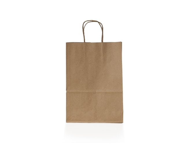 Sacola em papel kraft com alça de papel. OBS.: PEDIDO MÍNIMO E MÚLTIPLO DE 10!
