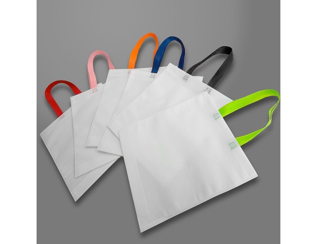 Sacola confeccionada em TNT biodegradável com estrutura termosselada que oferece maior resistência e segurança durante o uso.