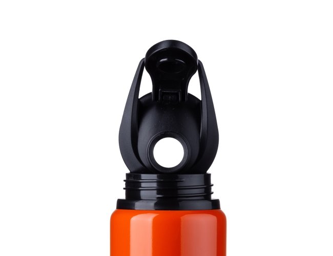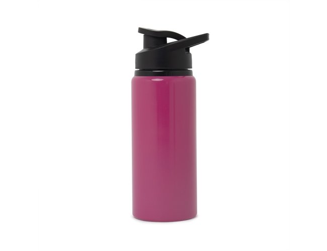 Squeeze alumínio de 650ml com pintura brilhante. Squeeze com tampa plástica rosqueável, alça e tampa protetora para o bocal.