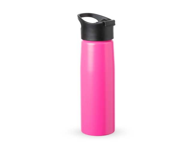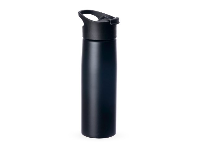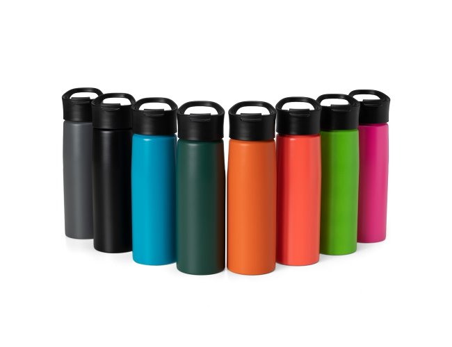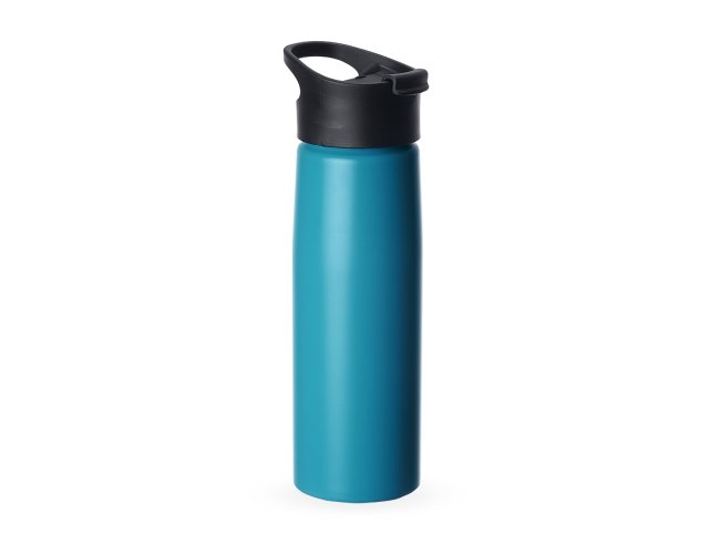 Squeeze alumínio de 750ml com pintura fosca. Squeeze com tampa plástica rosqueável, alça e tampa protetora para o bocal.