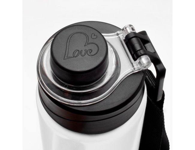 Squeeze Alumínio 800ml, possui tampa rosqueável com proteção para bocal plástica e alças de nylon e plástica.