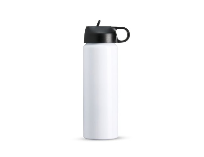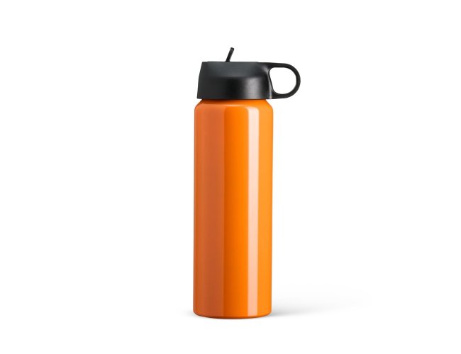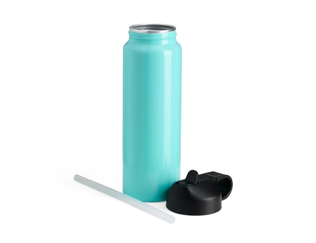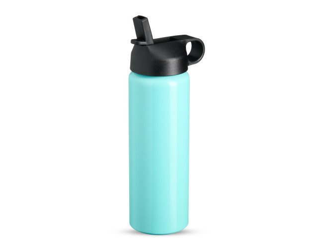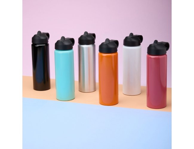 Squeeze de alumínio com capacidade para 800ml. Tampa plástica com bico flip e alça para transporte embutida.