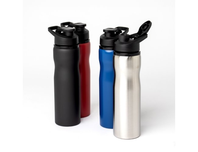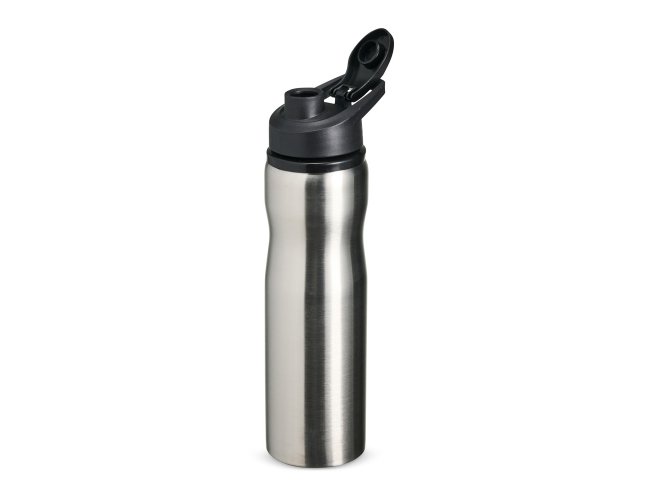 Squeeze feito em inox com 750ml. Possui tampa plástica, bocal com tampa protetora e alça para transporte. Este brinde será o parceiro de atividades físicas perfeito.