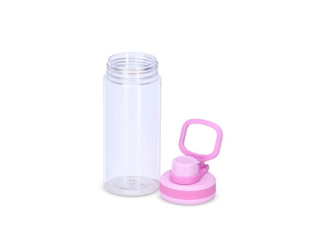 Um squeeze leve e versátil feito em plástico, com capacidade de até 500ml. Sua tampa rosqueável contém um protetor para o bocal e alça para facilitar o transporte.