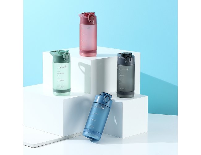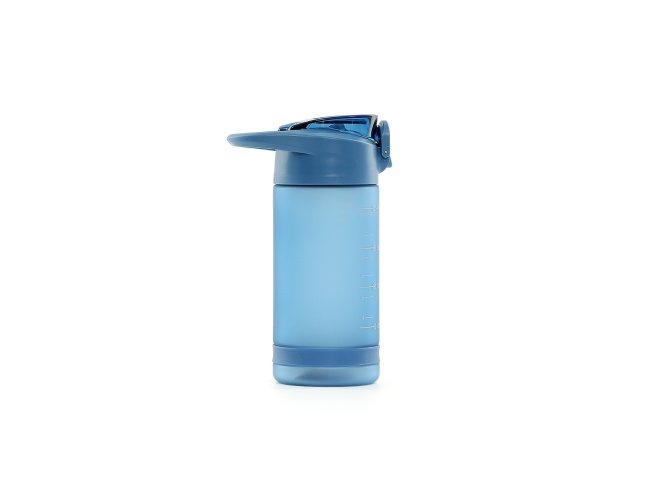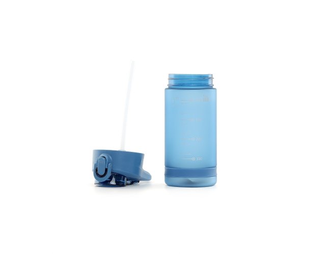 Squeeze plástico com capacidade de 550ml. Possui tampa rosqueável com bico de canudo, tampa protetora e botão de acionamento. Squeeze com acabamento fosco, detalhe emborrachado na parte inferior e alça para transporte.