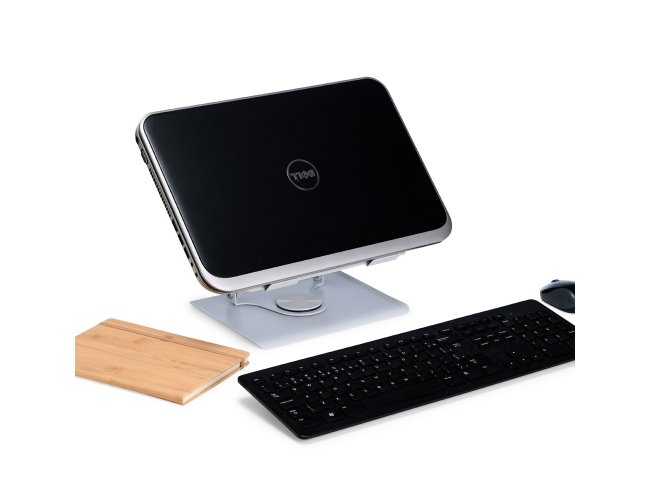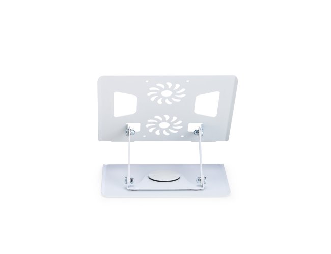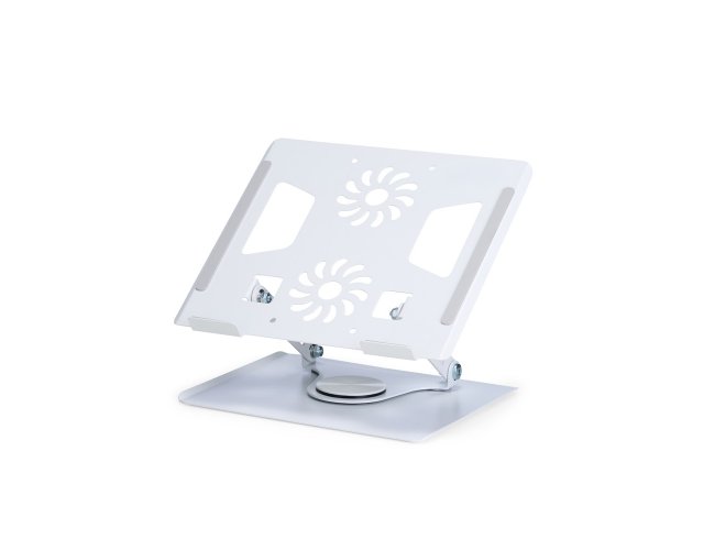 Suporte articulado para notebooks com ajuste em diversos ângulos, com a possibilidade de realizar movimentos giratórios em até graus, tudo isso para alcançar a melhor posição de uso do aparelho com mais conforto e ergonomia nos mais variados ambientes, como escola, trabalho ou em casa. A construção funcional em aço do suporte e suas aberturas nas laterais e no centro ajudam na dissipação de calor do aparelho aliada com as tiras antiderrapantes nas laterais e nas bordas inferiores garantem um uso mais seguro e estável do eletrônico.