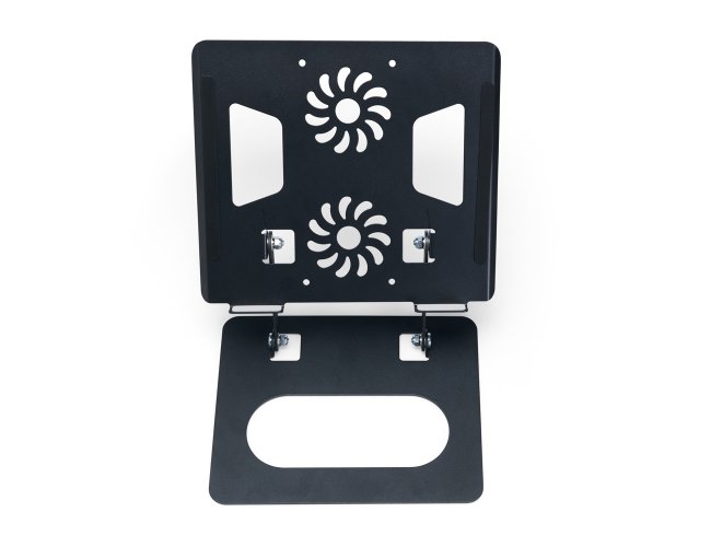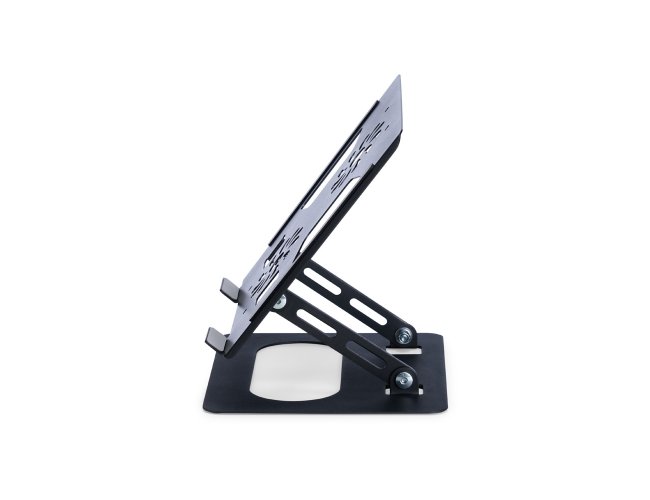 Suporte articulado para notebooks com ajuste em diversos ângulos para alcançar uma melhor posição de uso do aparelho com mais conforto e ergonomia nos mais variados ambientes, como escola, trabalho ou em casa. A construção funcional em aço do suporte e suas aberturas nas laterais e no centro ajudam na dissipação de calor do aparelho aliada com as tiras antiderrapantes nas laterais e nas bordas inferiores garantem um uso mais seguro e estável do eletrônico.