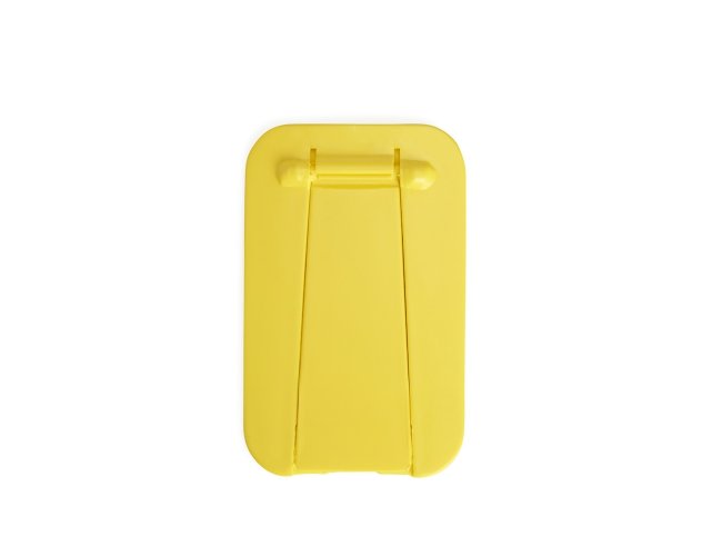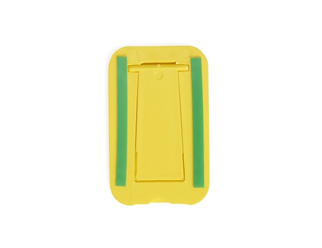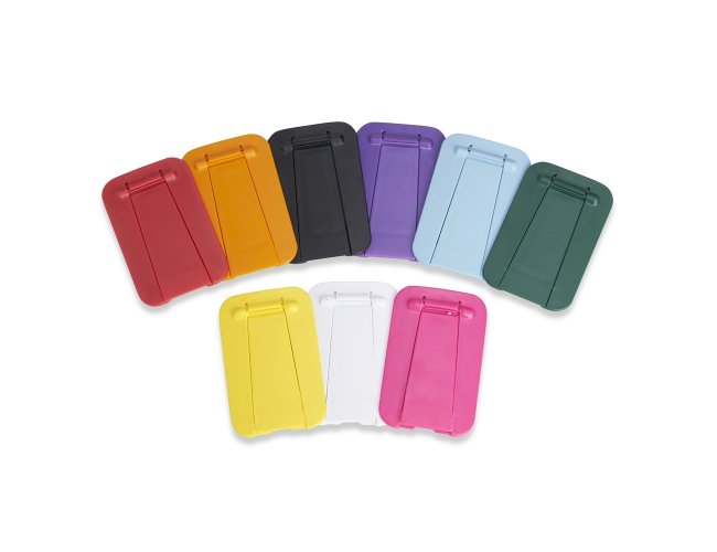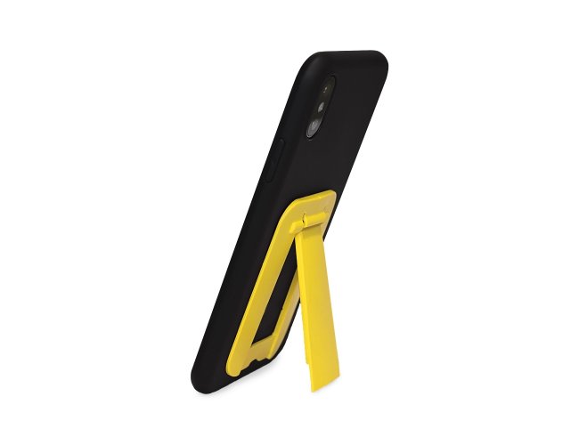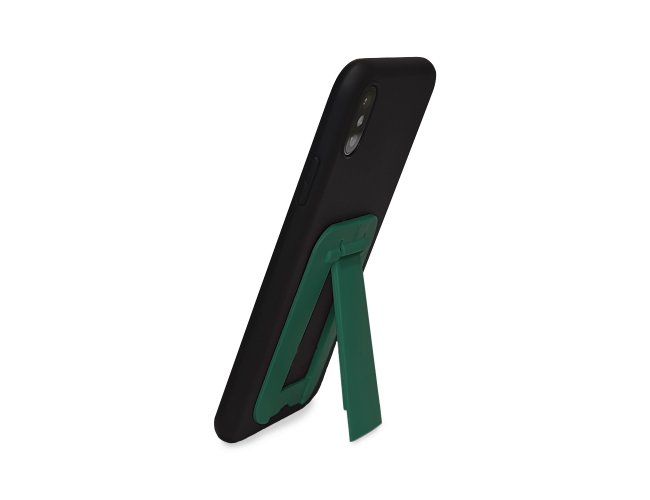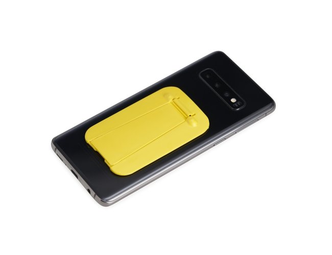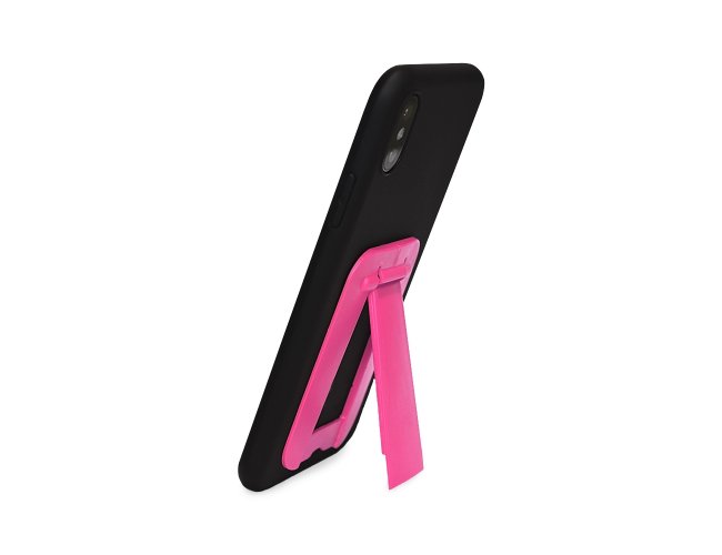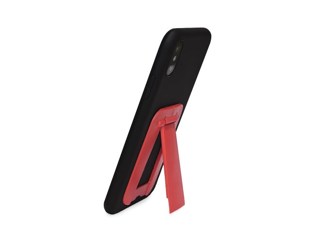 Suporte plástico para celular, possui no verso fita dupla face para fixação.